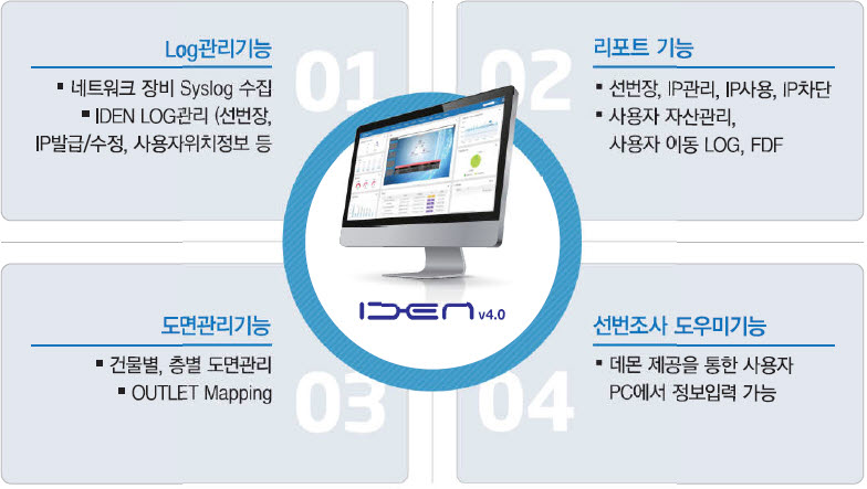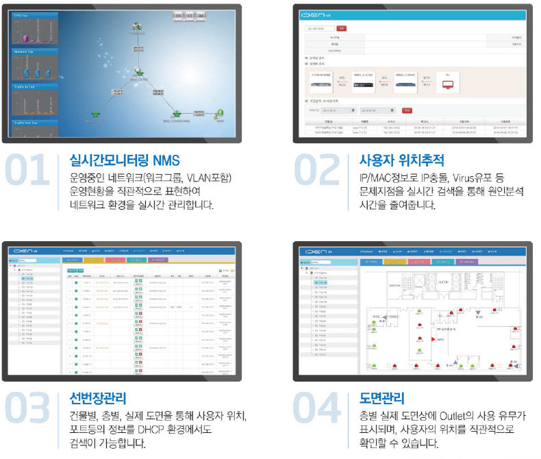 - ½Ç½Ã°£ ¸ð´ÏÅ͸µ(NMS) - »ç¿ëÀÚ À§Ä¡ÃßÀû - ¼±¹øÀå °ü¸®(µµ¸é°ú ¸ÊÇνÃŲ »ç¿ëÀÚ Á¤º¸ °ü¸®) - IPÁÖ¼Ò°ü¸®(ÇöȲ, ¹ß±Þ, À§Ä¡Á¤º¸) - FDF(³×Æ®¿öÅ© ÇöȲ ½Ã°¢Àû Ç¥Çö)